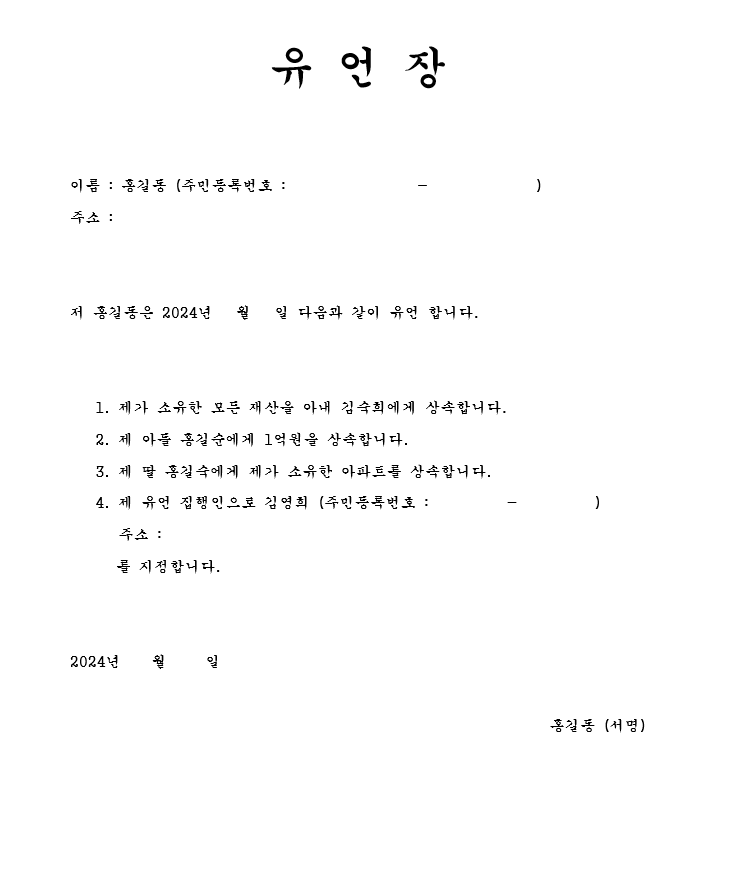 - 유언 집행: 유언장을 통해 유언 집행인을 지정하여 유언을 원활하게 집행할 수 있습니다.
